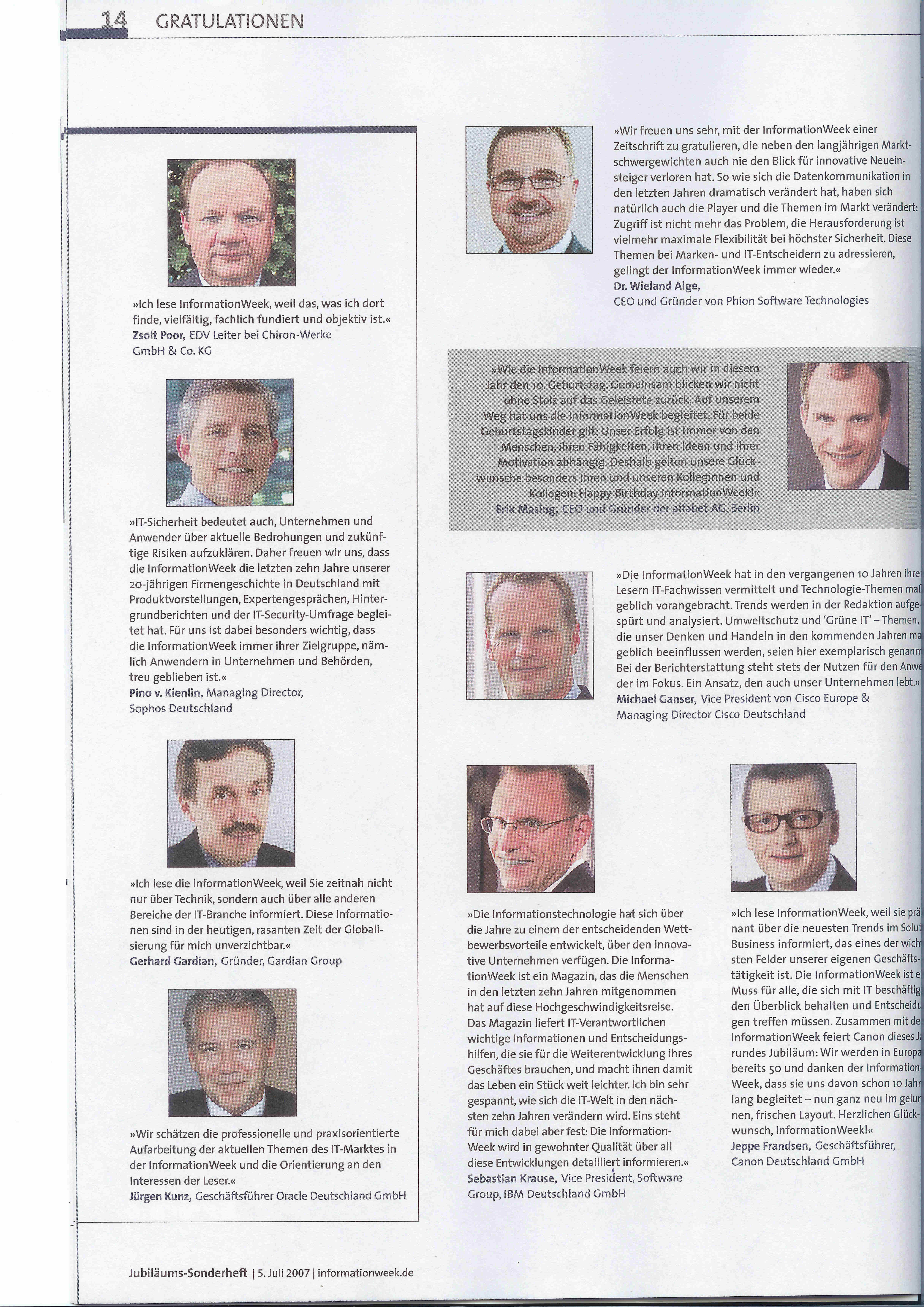 Die Informationweek ist ein langjährigen Begleiter von Gerhard Gardian und verhalf Ihm, u.a., mit den